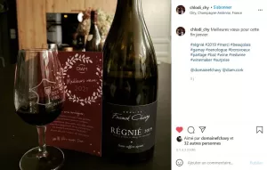 En ce mois de janvier, chacun d’entre eux a ainsi reçu notre carte de vœux accompagnée d’une bouteille de Régnié, sans sulfite ajouté, du Domaine Franck Chavy.